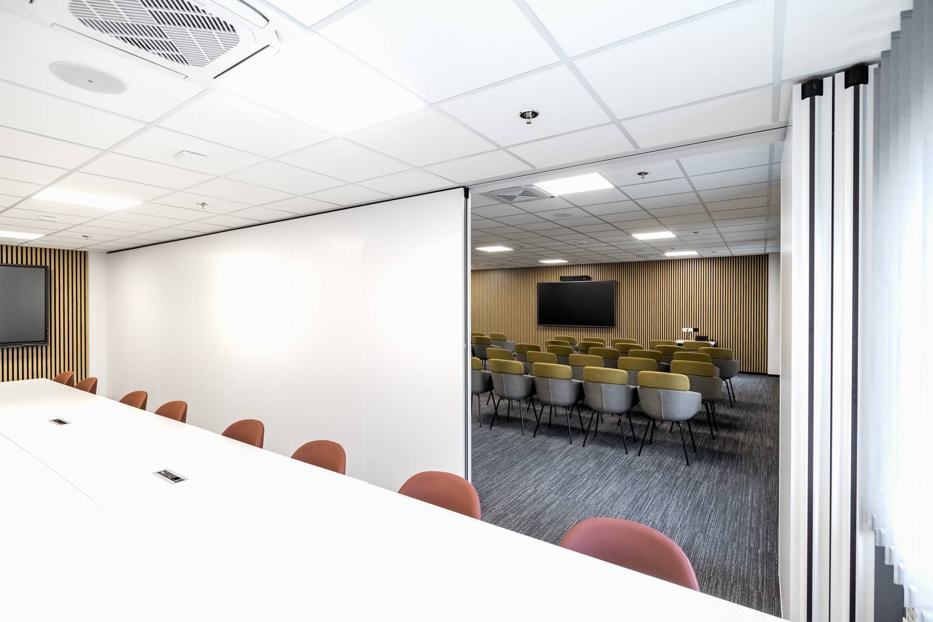 Dźwiękoszczelność ścian to jedna z głównych, wymaganych właściwości przestrzennych w nowoczesnym biurze, centrum konferencyjno-szkoleniowym czy też pomieszczeniach hotelowych. Akustyczna ściana mobilna MAW110, dzięki jednym z najwyższych dostępnych na rynku parametrów izolacji dźwiękowej, co potwierdzają niezależne badania, jest idealnym rozwiązaniem do oddzielenia pomieszczeń wymagających użytkowania ich w ciszy.