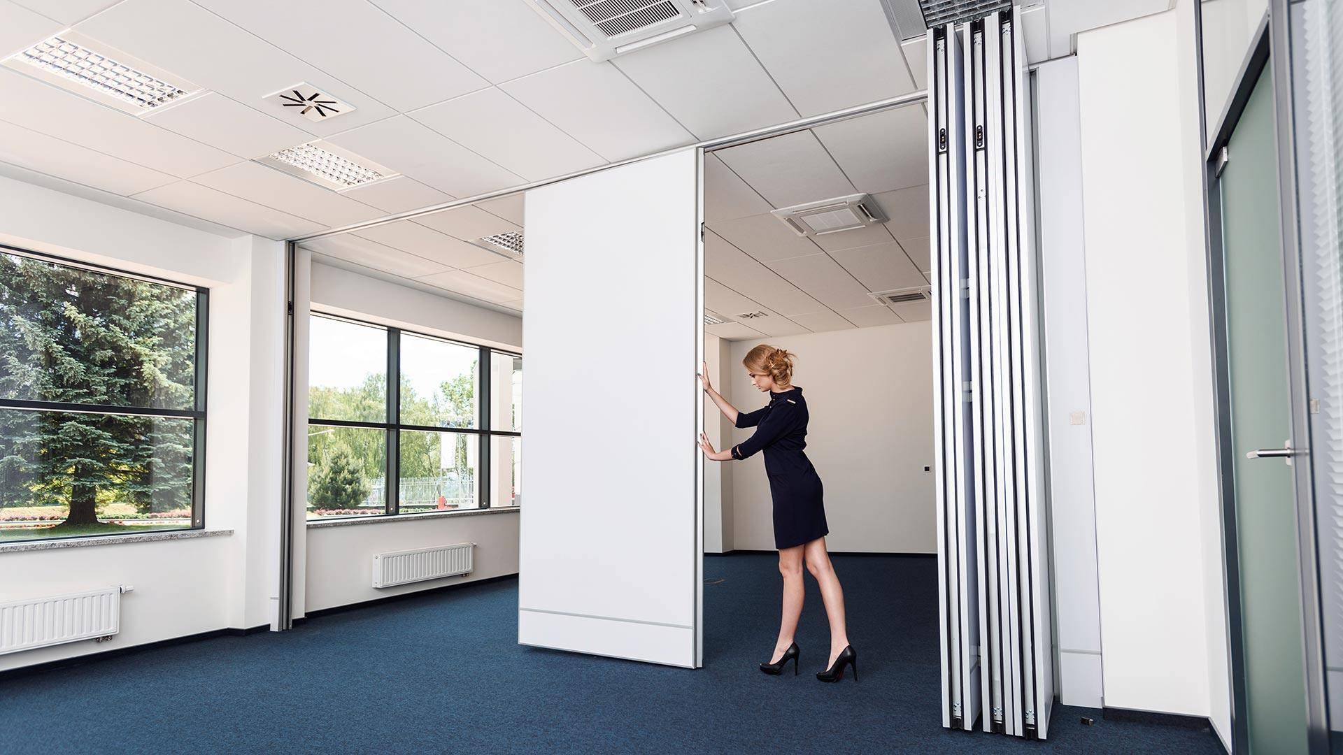 Zaparkowane ściany działowe nie mogą przeszkadzać w użytkowaniu pomieszczenia ani wpływać negatywnie na jego estetykę. Nasze produkty umożliwiają łączenie poszczególnych typów parkownic, co pozwala na zaprojektowanie wariantu odpowiedniego dla architektury wybranego pomieszczenia. Dostosowanie sposobów parkowania do możliwości przestrzennych wnętrza oraz preferencji klienta, umożliwia wygospodarowanie miejsca na złożoną ścianę, nawet w niewielkim pomieszczeniu. 1-punktowe zawieszenie paneli ściany mobilnej pozwala na zamontowanie jej zarówno w małych pomieszczeniach, nieposiadających miejsca na osobną parkownicę, jak i w budynkach o konstrukcji, która technicznie uniemożliwia wykonanie standardowego systemu parkowania.